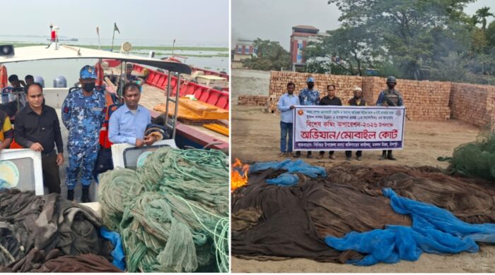 মতলব উত্তরে বিশেষ কম্বিং অপারেশন অবৈধ ৭ টি জাল জব্দ ও ৩ টি জাগ উচ্ছেদ
