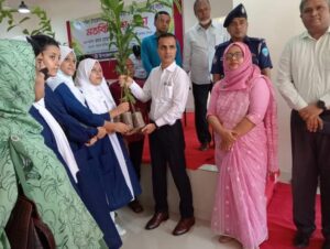 পরে জেলা প্রশাসক মাহাম্মদ মোহসীন উদ্দিন ছাত্র-ছাত্রীদের মাঝে গাছের চারা বিতরন করেন এবং উপজেলা প্রঙ্গণে গাছের চারা বিতরন করেন।